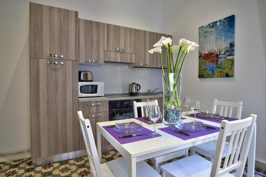 Boasting a private entrance, this air-conditioned apartment includes 1 living room, 1 separate bedroom and 1 bathroom with a shower and a hairdryer. In the well-equipped kitchen, guests will find a stovetop, a refrigerator, kitchenware and an oven. This apartment has a washing machine, flat-screen TV with cable channels, city views, as well as wine/champagne for guests. The unit has 1 bed.